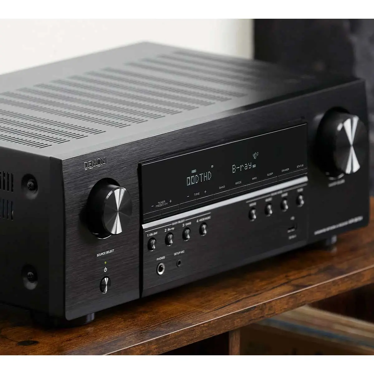 The AVR-S670H has incredible 8K video, high-definition surround sound, Dolby TrueHD, and DTS HD Master Audio decoders. Plus, with HEOS® Built-in, you can stream and share music to Denon Home wireless speakers in other rooms. This is the heart of your home theatre.